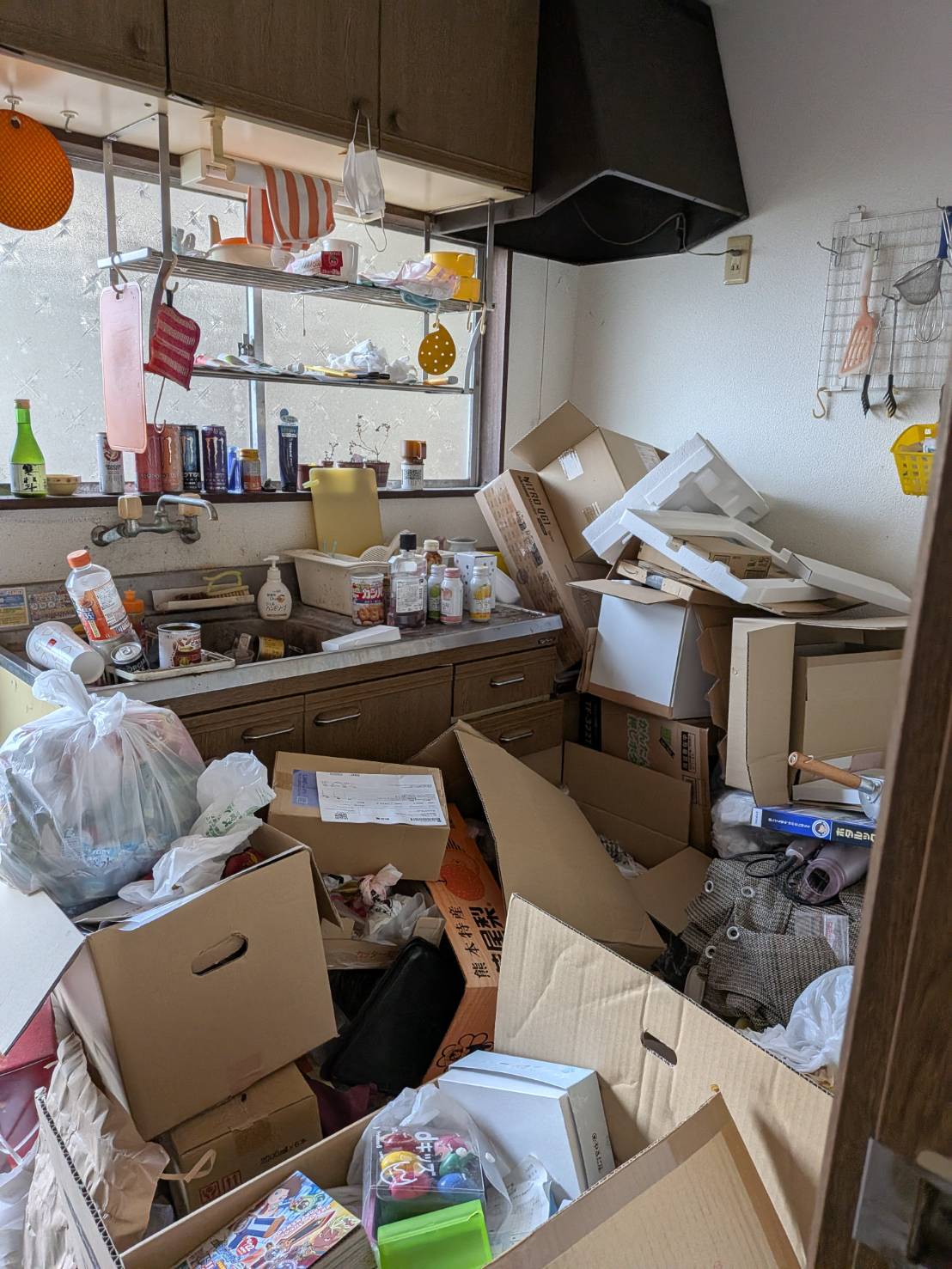 お部屋やキッチンには大量のゴミや不用品が散乱しており、「どこから手を付けていいのか分からない」という大変お困りのご状況でした。